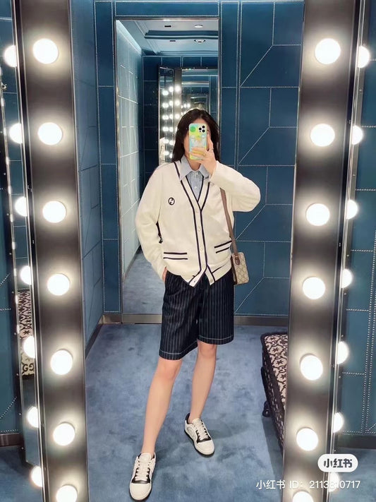 • 대리석 /  구찌 블루 엣지 디테일의 브이넥 가디건