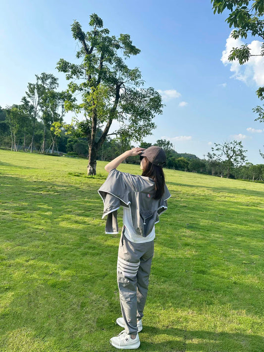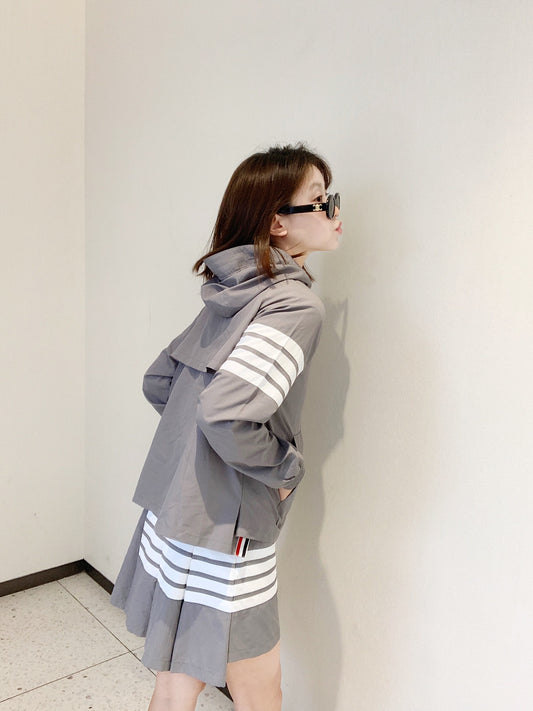 대리석 / 톰브라운 하프지퍼 윈드브레이커, 화이트 지퍼 후드, 스커트 세트