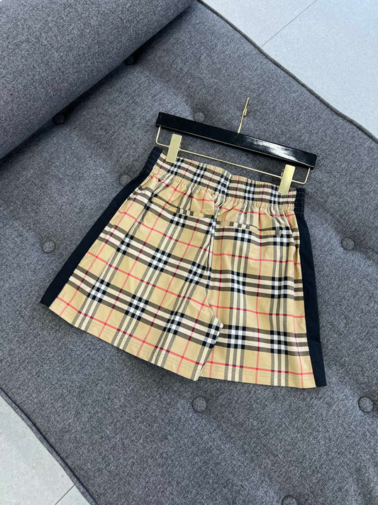 대리석 / 버버리 여성 반바지 , 블랙 보더 체크 무늬 반바지