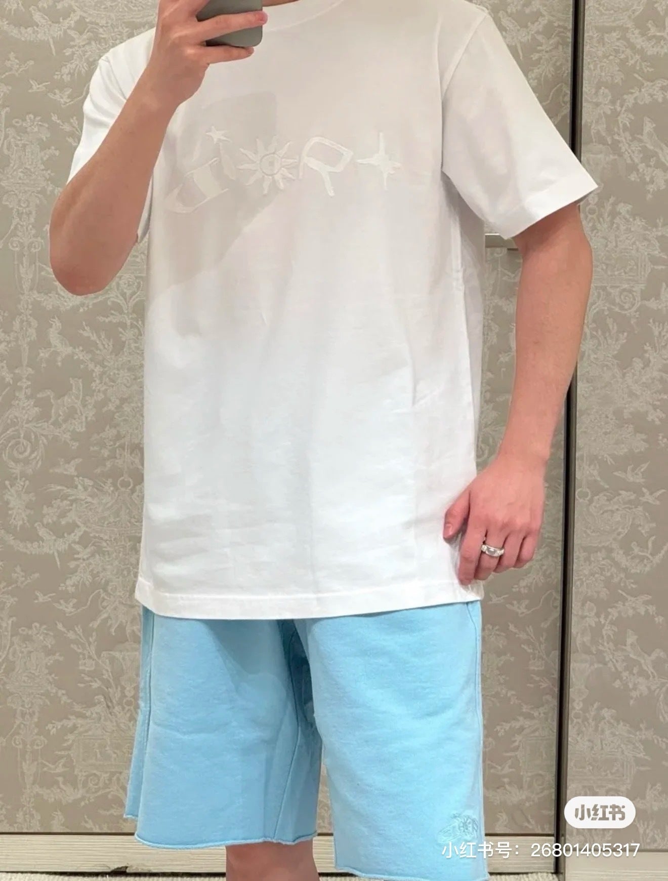 대리석 / 디올 별빛 로고 자수 반팔티셔츠 화이트
