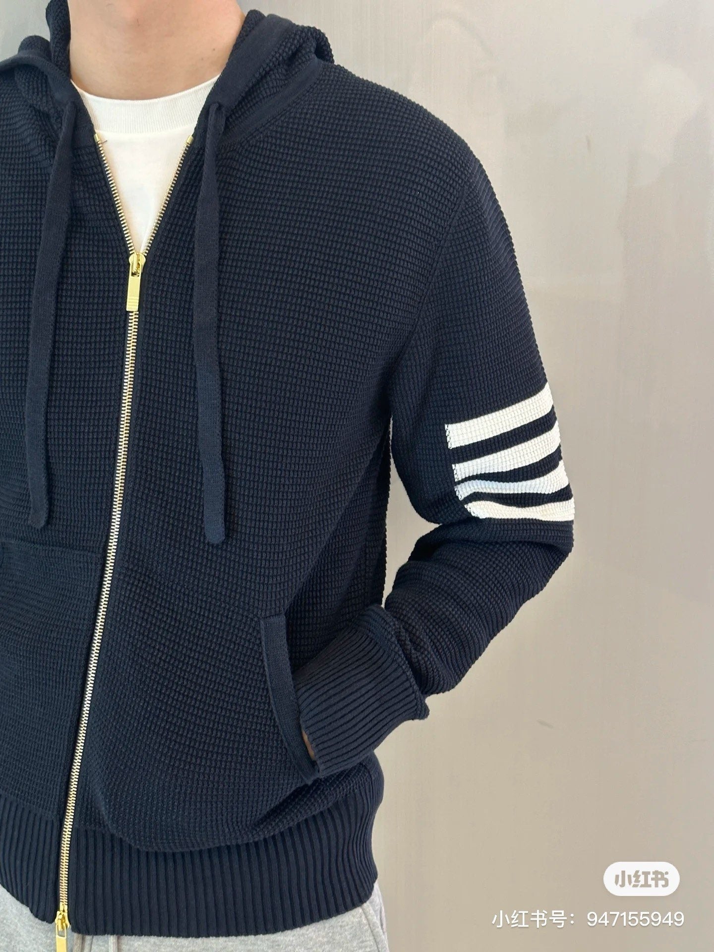 대리석 / 톰브라운 사선 완장 와플 후드 집업