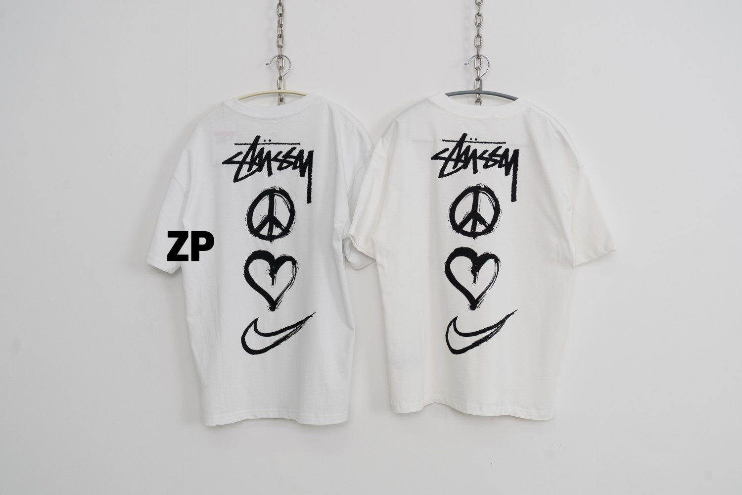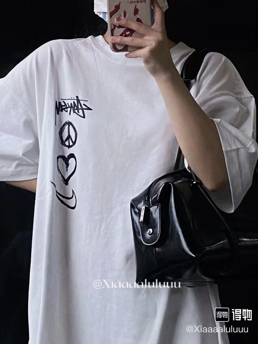 사슬 / 스투시 남성 하트 레터링 로고 프린트 라운드 반팔 티셔츠