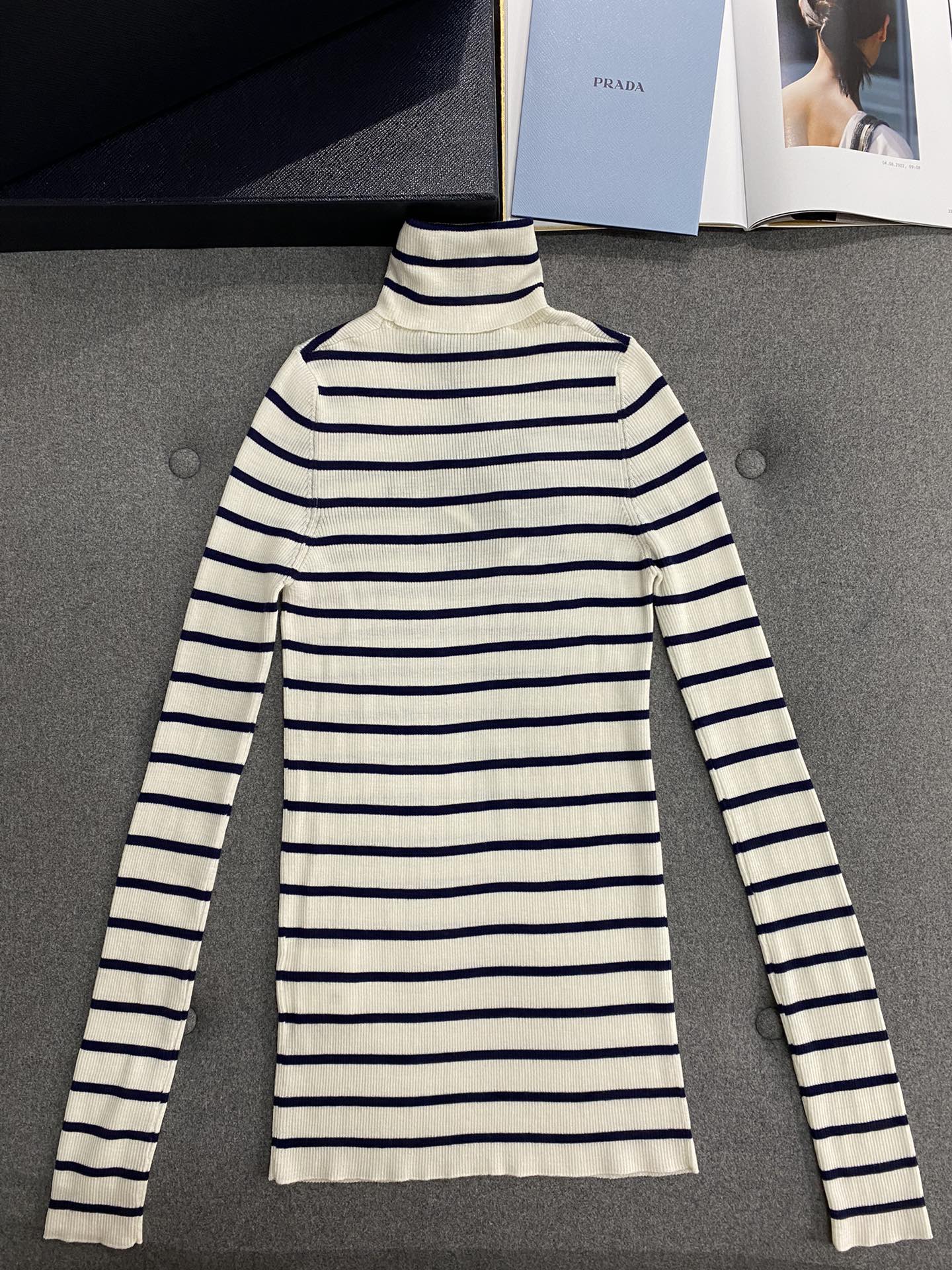 TJ셀러/프라다 여성 줄무늬 슬림핏 터틀넥 니트