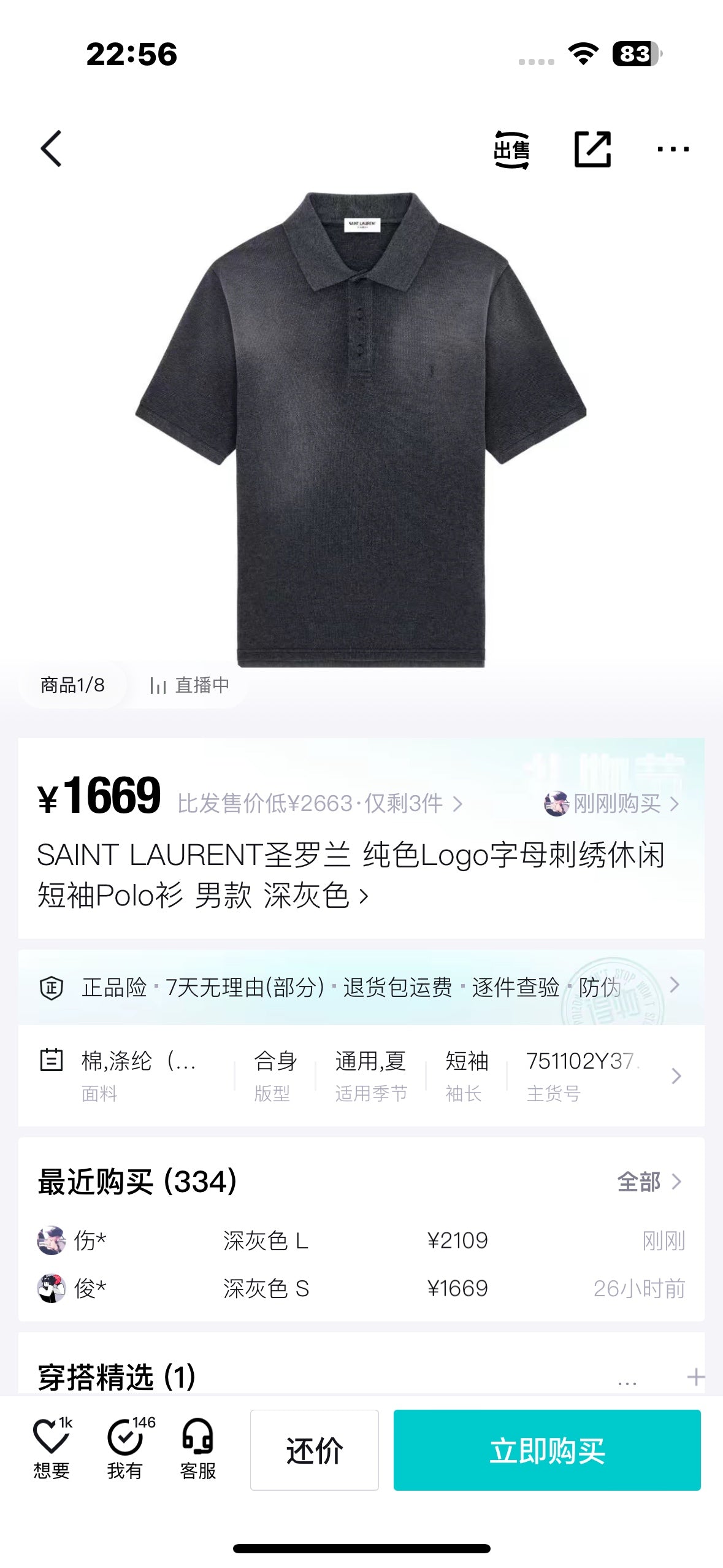 사슬 / 입생로랑 남성 자수 캐쥬얼 반팔 폴로넥 셔츠