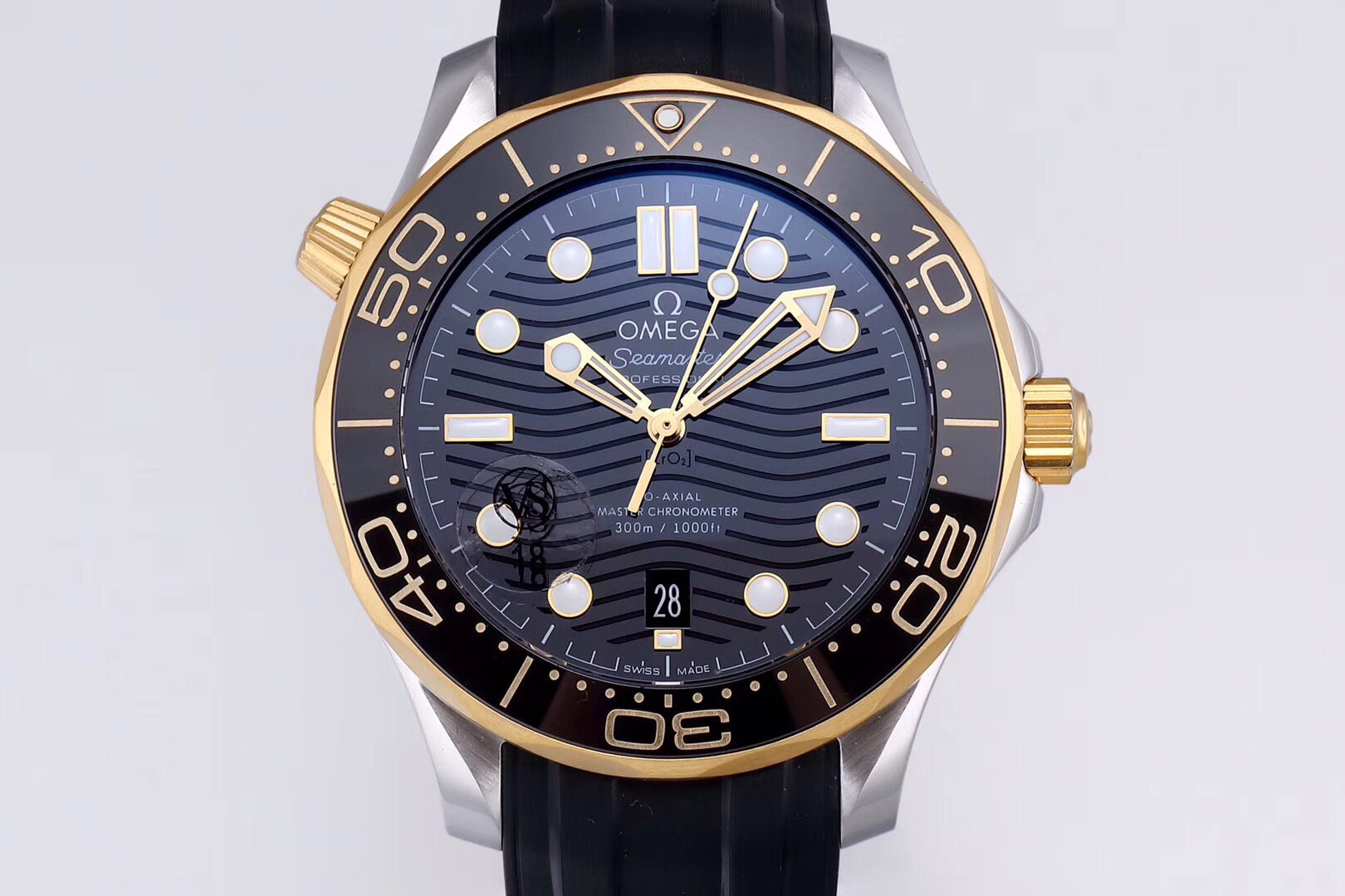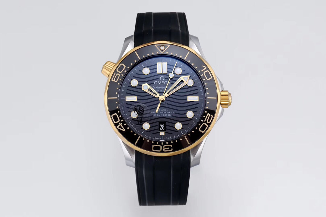 VS 신제품: 새로운 시마스터 300M 골드. 올바른 버전을 선택하는 것이 매우 중요합니다. VS 버전과 정품 모두 12시 방향의 바깥쪽 링에 AU750, 도그헤드 마크, 밸런스 스케일, 그리고 유럽 로고가 있는 귀금속 마크가 있습니다. 이 마크가 있는지 확인하면 VS/마켓 버전을 구별할 수 있습니다. 구매자와 판매자는 당황스러운 버전에 대해 걱정할 필요가 없습니다
